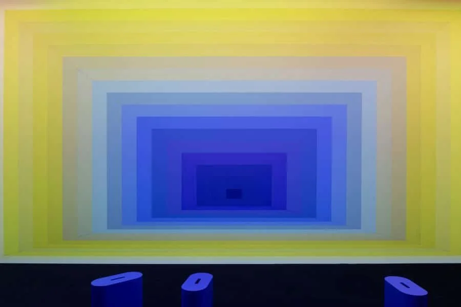 Unveiling in mid October 2025 is a new installation in the Mies Exhibitions for Illinois Institute of Technology Campus History Illinois Institute of Technology Campus History entitled "A Mies Space for the Senses". This exhibition will feature the creative brilliance of acclaimed artistic duo Petra Bachmaier and Sean Gallerlo, or otherwise known as Luftwerk. Luftwerk explores sensory perception in space and time with color, texture, planes, movement and light. Their exploration of history and architecture brings them to Illinois Tech's Mies Campus with an installation of artwork that pays homage to the work of Mies and Lilly Reich's Cafe Samt & Seide,1927, (Velvet and Silk Cafe) as part of an exhibition in Berlin. Mies Society and the InterProfessional Projects (IPRO) Program students from Mindful Modern Buildings have underpinned this exhibition by exploring body-image theory, aesthetics, and movement as guided through sight, sound, touch, and haptic (feeling and doing at the same time) senses. The importance of basic spatial dimensions will guide wayfinding and heighten the experience of architecture.
